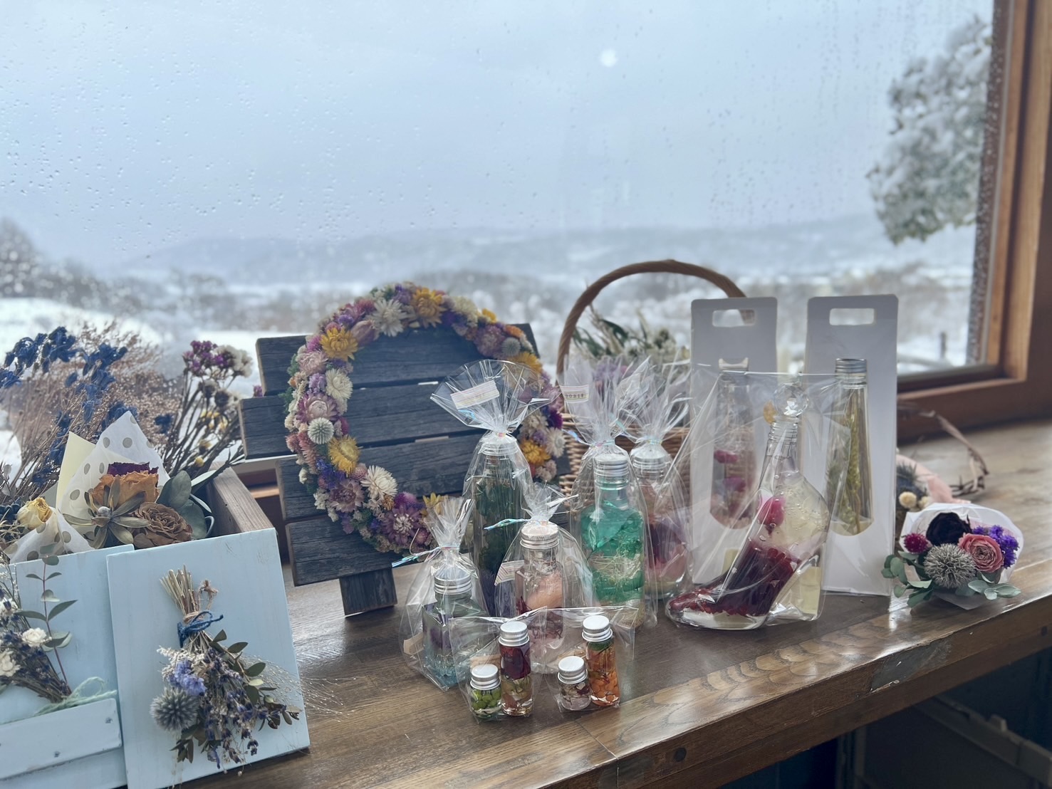売店では、ハーブティーやアロマグッズ、地域の草花を使用した手づくり品のほか、当施設で製造したフレッシュチーズや上田市の特産品を揃えております。